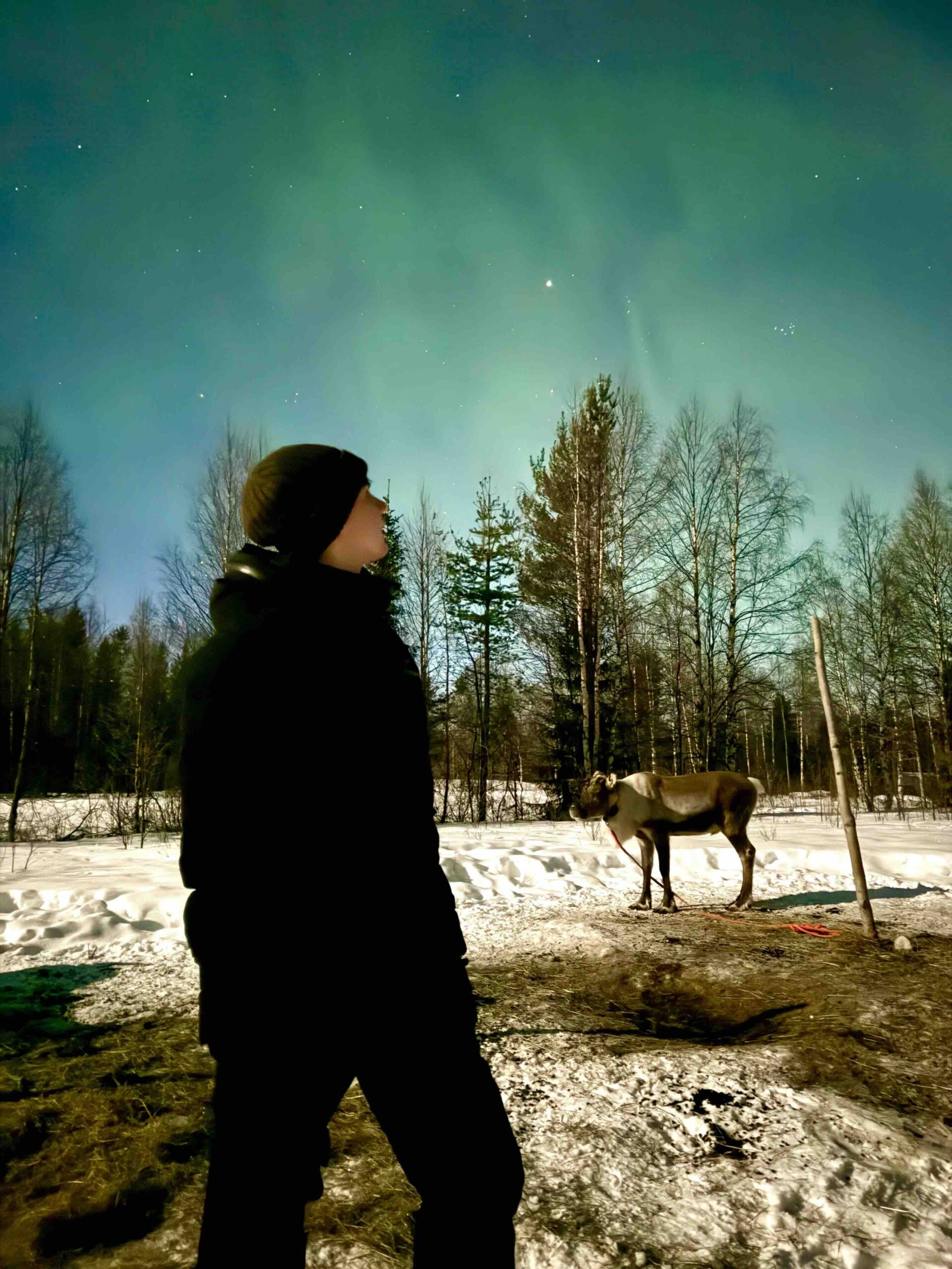 StayLapland Northern Lights tour reindeer safari in Rovaniemi. Northern Lights activity, reindeer tour, reindeer safari, northern lights safari, aurora borealis. Lapland, Finland