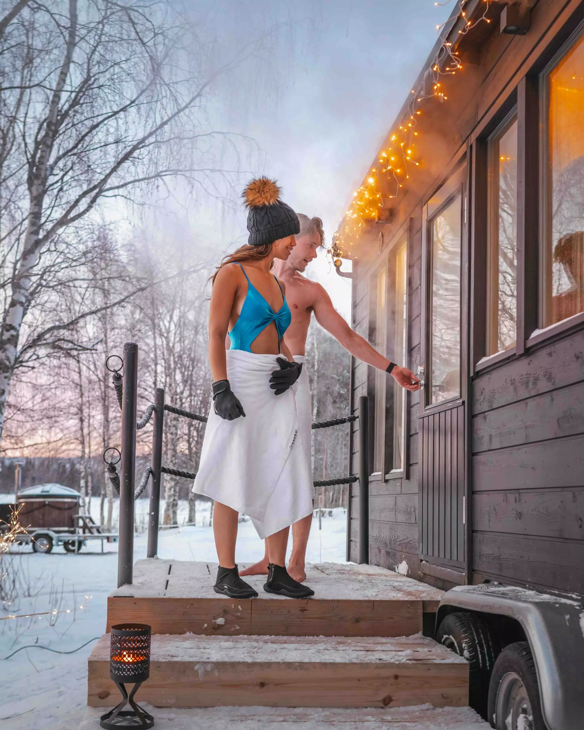 Trae tu propio traje de baño si lo deseas; pero la ropa es opcional en esta experiencia privada de sauna y baño en hielo