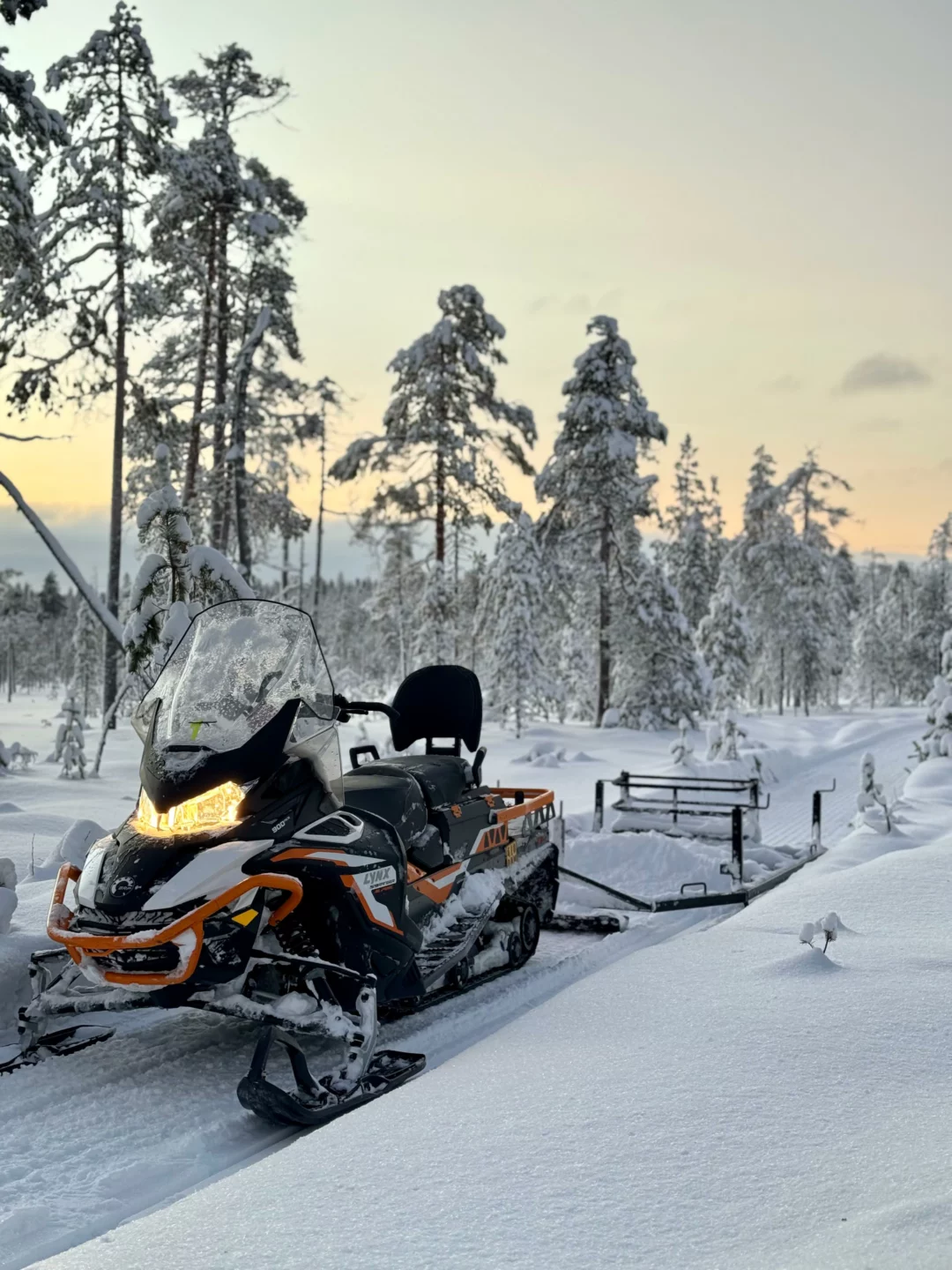 Niños más pequeños (menos de 140 cm): Viajarán en un trineo tirado por la moto de nieve del guía.
