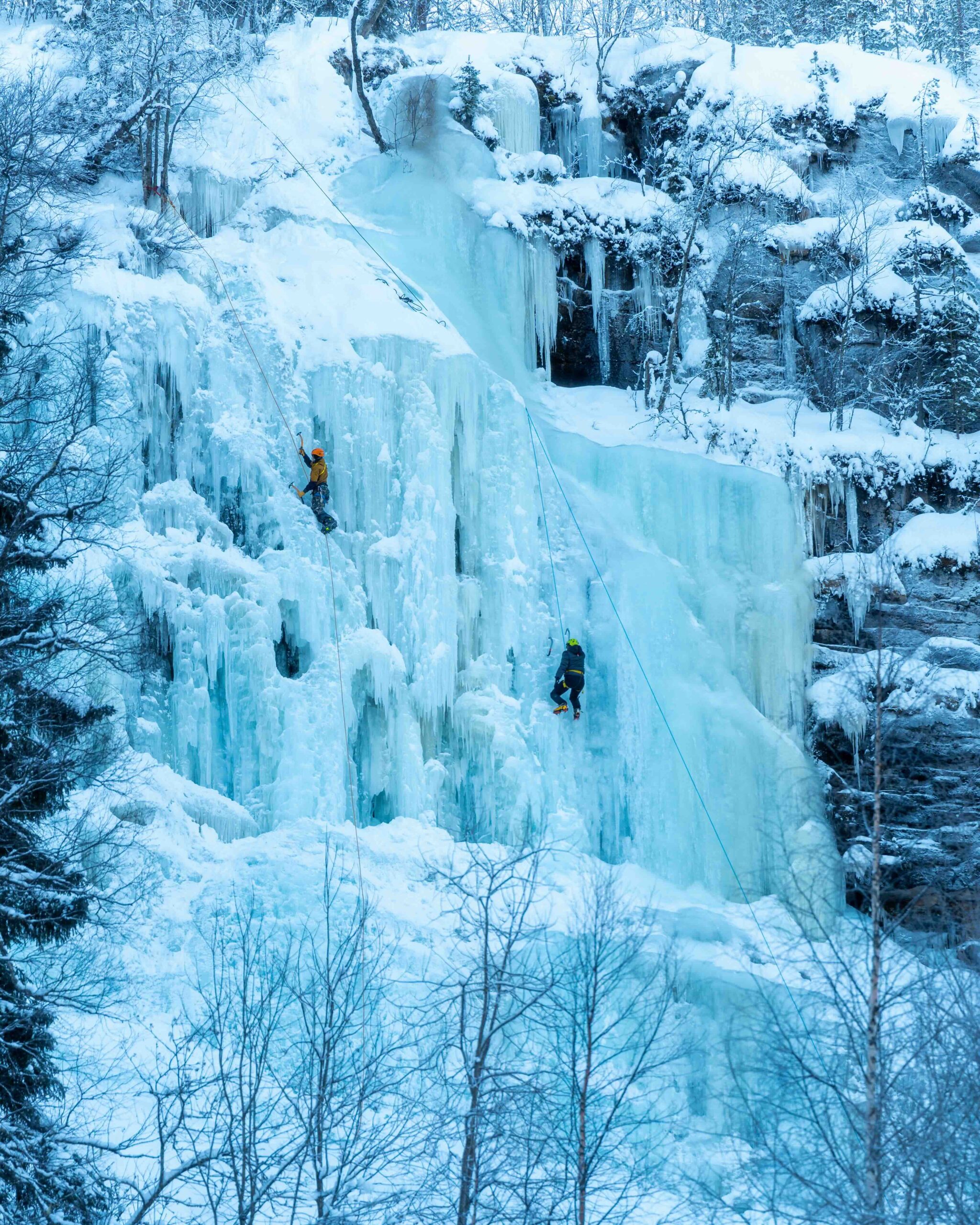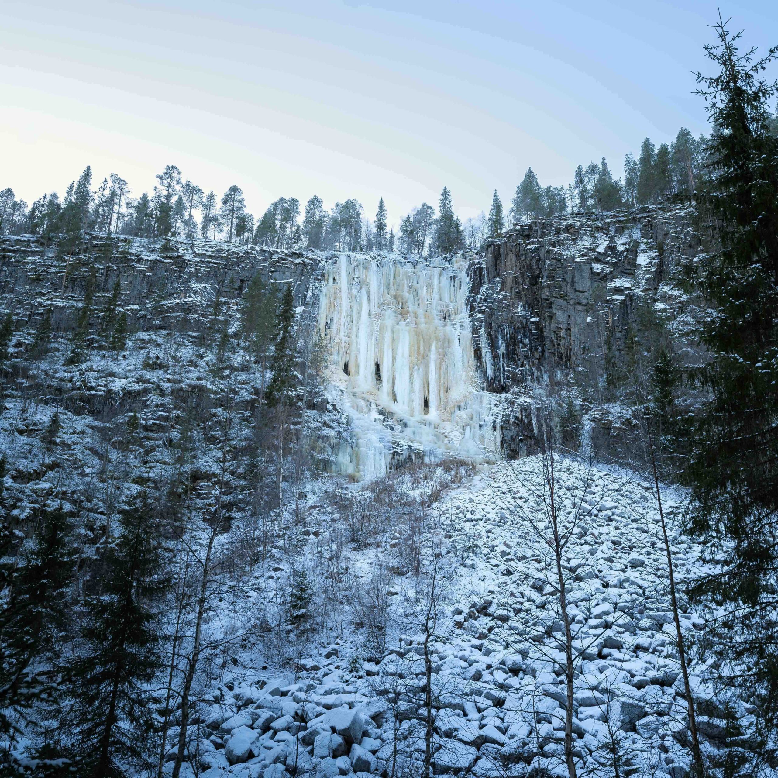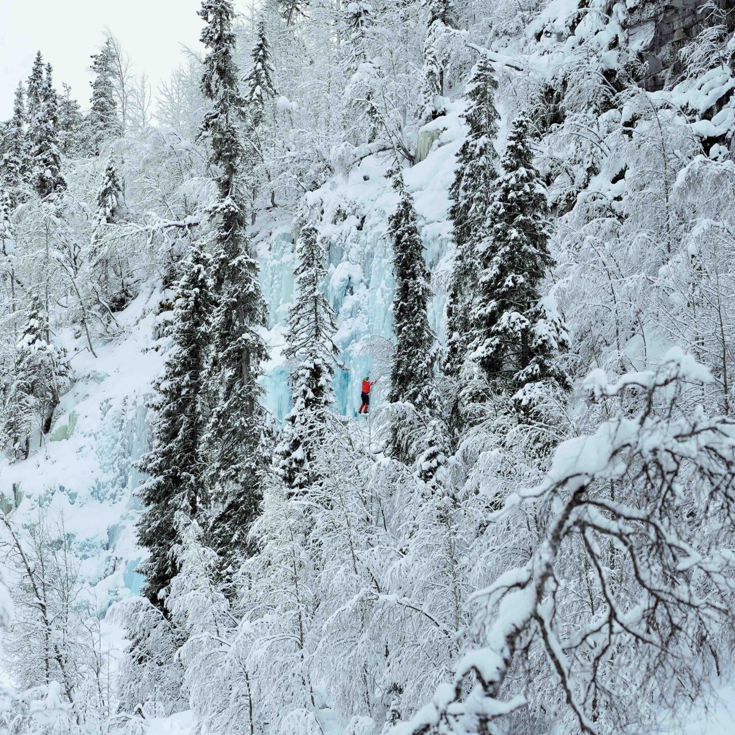 Korouoma è un’area naturale protetta finlandese conosciuta in inverno per le sue cascate ghiacciate, e dove si possono trovare scalatori su ghiaccio.